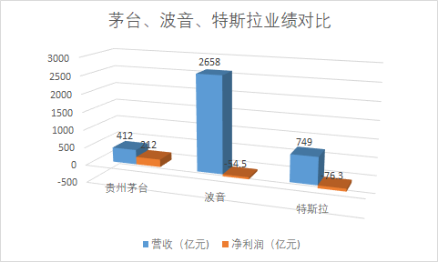 | 贵州茅台市值=波音+特斯拉 波音的营收是茅台的6倍 |